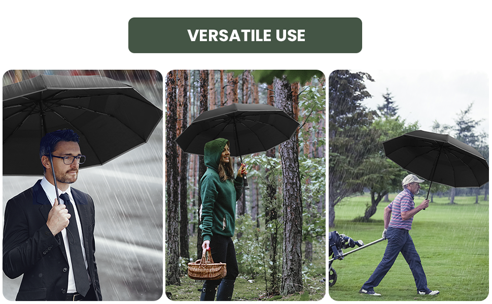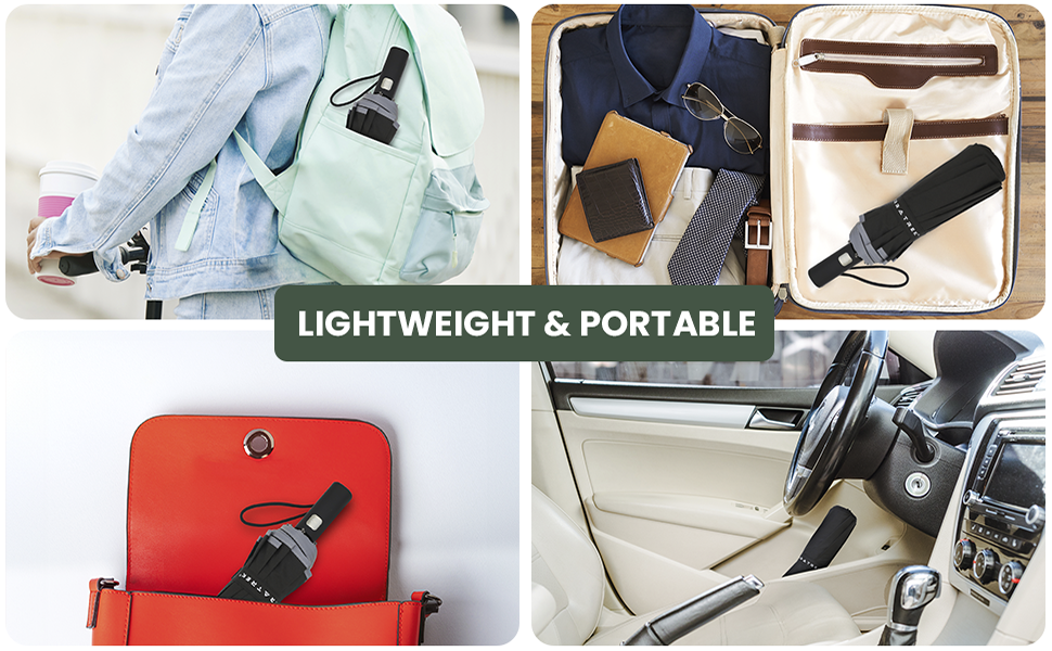 With a push of a button, our windproof umbrellas swiftly open and close. At 32cm when folded, our wind proof umbrella allows for easy storage in backpacks, purses, or car doors.